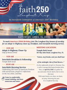 Here on Longboat Key, Gulf of Mexico Drive is always in need of attention. In fact, in a couple of weeks, local churches will be working together to clean a two-mile stretch of the roadway. If you would like to join us, we will gather on Saturday, April 18, at 8:30 am at Temple Beth Israel on Bay Isles Road. That may sound like a bit of a commercial plug, but it is a meaningful opportunity. We are blessed to live in this country, and taking care of our communities is one small way we can give back.